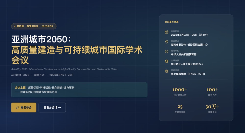 - 会议预告 | 亚洲城市2050国际学术会议(2026)即将启幕,诚邀关注与支持